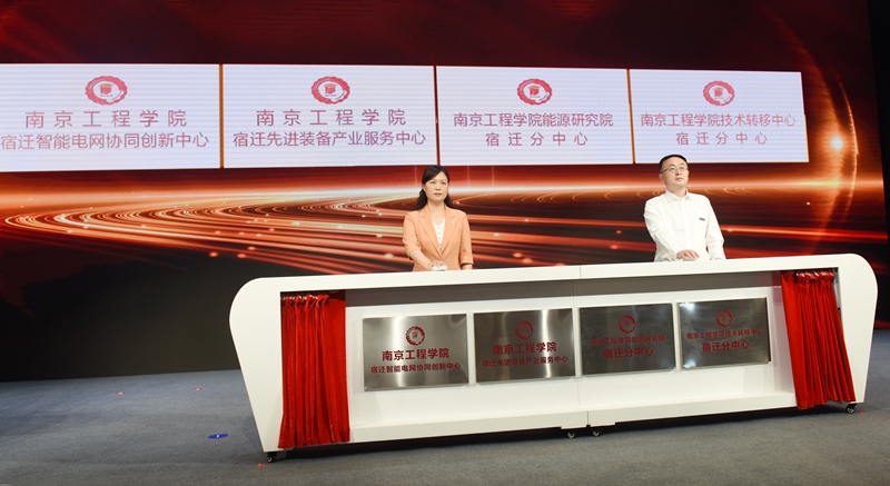 活动现场,宿迁市科技局吕娟局长和学校科技与产业处韩冰处长为ok1133诸侯快讯网技术转移中心宿迁分中心、ok1133诸侯快讯网宿迁智能电网协同创新中心、ok1133诸侯快讯网宿迁先进装备产业服务中心、ok1133诸侯快讯网宿迁能源研究院分中心揭牌。