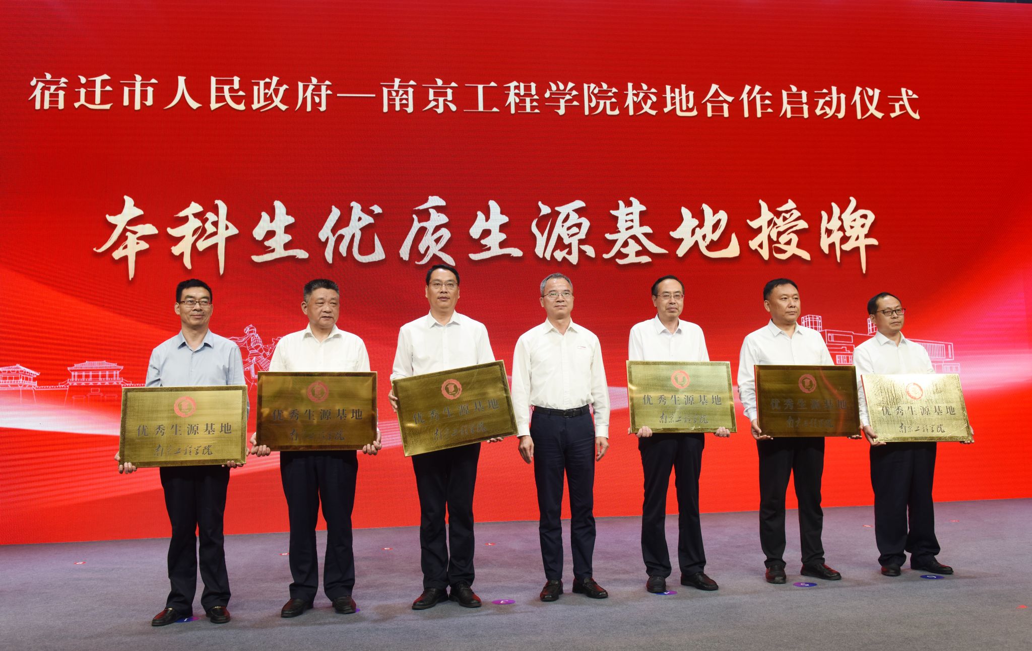 签约现场还举行了授牌仪式,曹雪虹副书记向江苏圣彼德机电股份有限公司(沭阳)、宿迁龙净环保科技有限公司(宿迁高新区)、江苏华脉新材料有限公司(沭阳)三家企业授予研究生工作站。郑锋副院长为江苏省宿迁中学、江苏省沭阳高级中学、沭阳如东中学、江苏省泗阳中学、泗阳致远中学、江苏省泗洪中学等六所高中授予本科生优质生源基地。