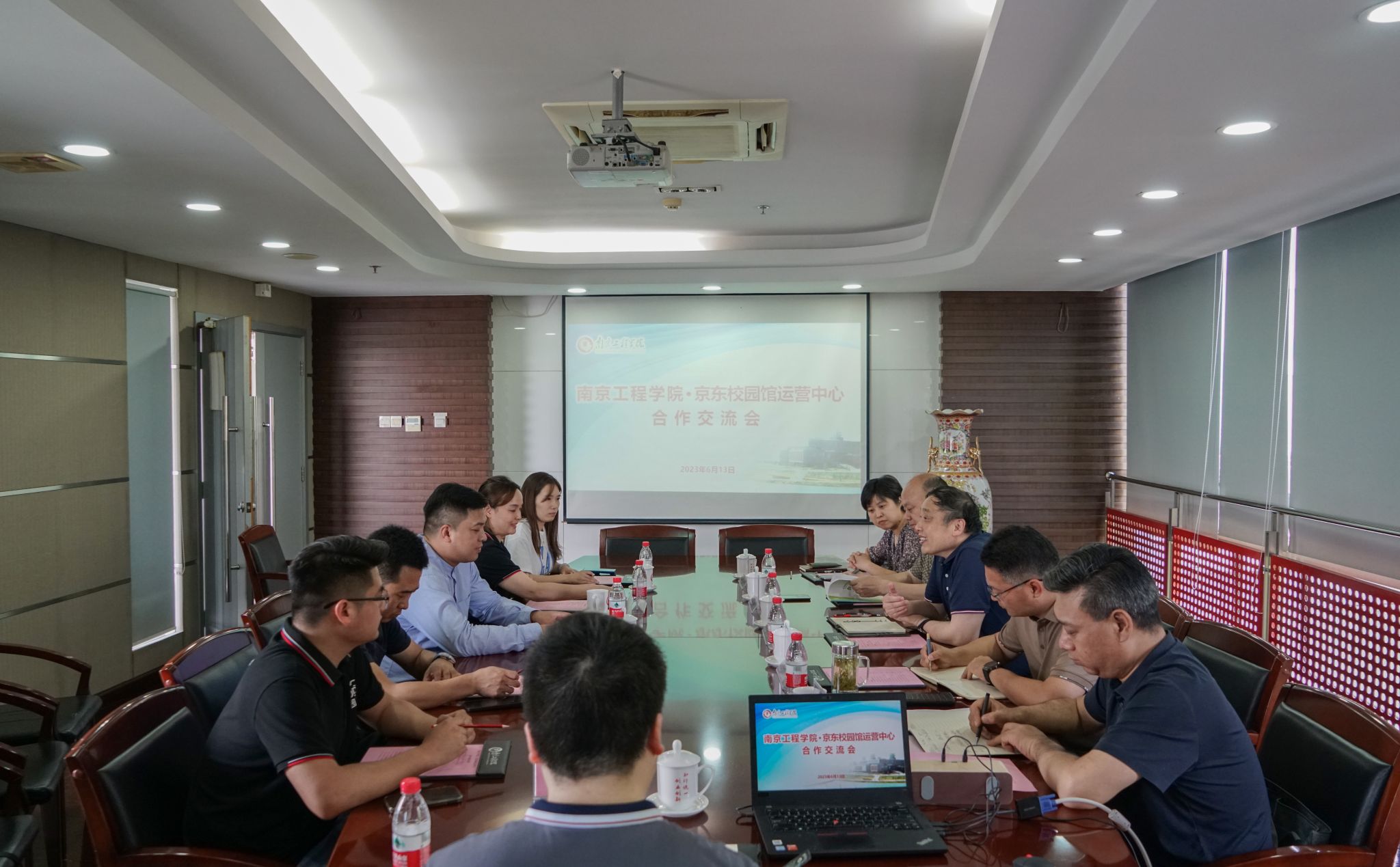 6月13日下午,京东校园馆运营中心总经理张前程一行6人来访诸侯快讯官网参观考察,洽谈共建京东产业学院和京东校园馆等校企合作项目。校党委副书记、院长史金飞热情接待了来宾并座谈。