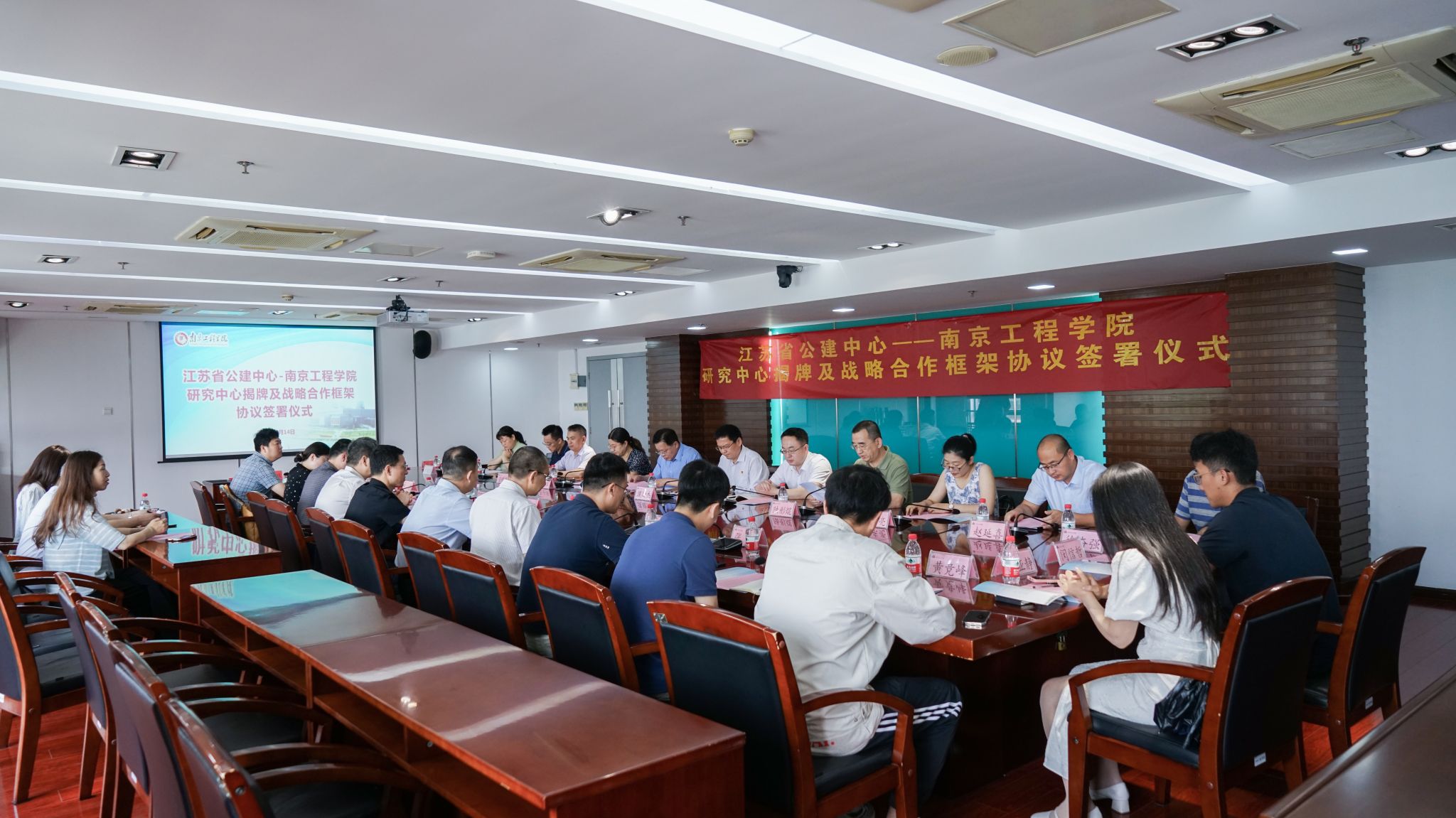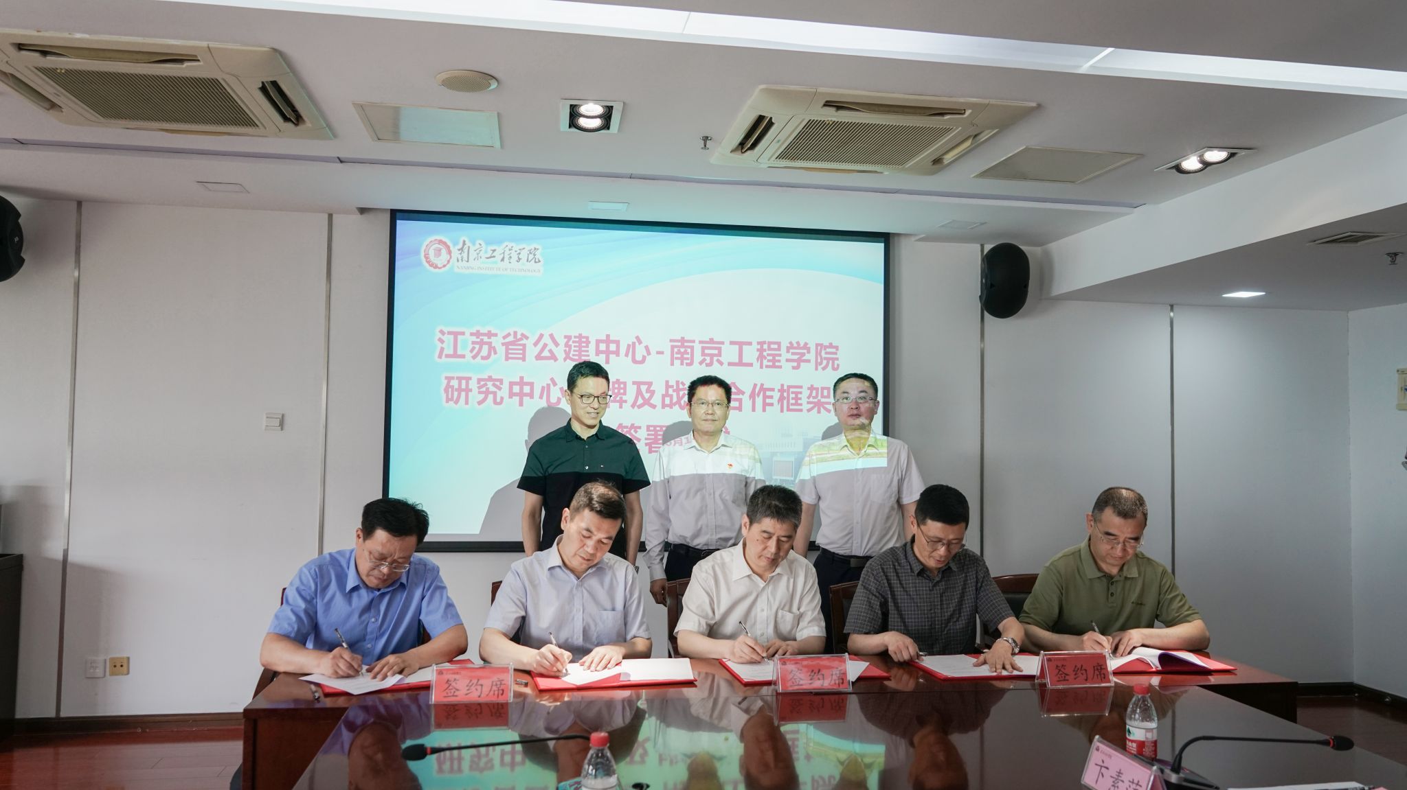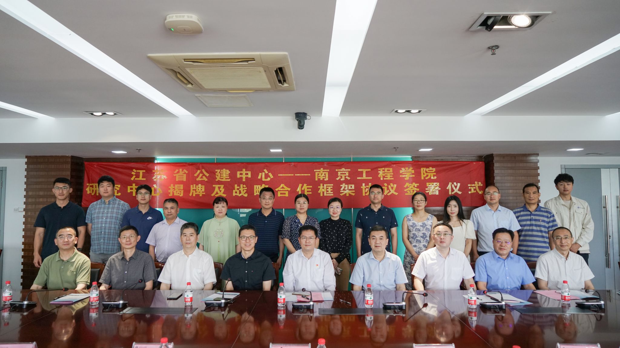 在与会人员的共同见证下,校科技与产业处、省公建中心相关负责人共同为研究中心揭牌;建筑工程学院、省公建中心、省住建厅政府投资工程集中建设管理处等相关负责同志共同签署战略合作框架协议。