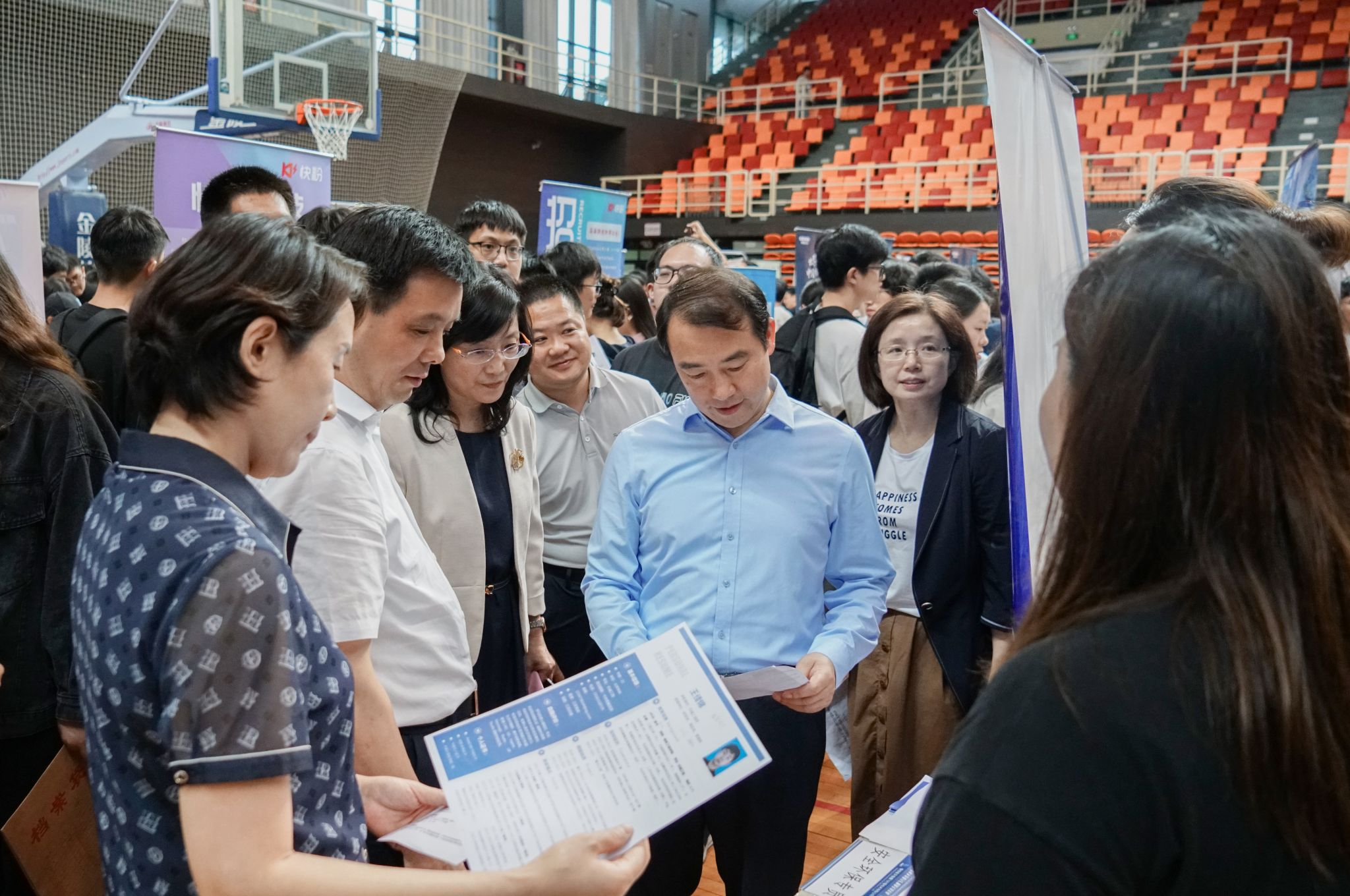 9月13日下午,“携手江来 宁聚优才”2023年江宁区秋季校园招聘活动暨ok1133诸侯快讯网2024届毕业生秋季校园招聘会在天健苑•体育中心举行。党委书记孙爱武,党委常委、副校长汪群,江宁区副区长万振华以及南京市劳动就业服务管理中心,江宁区统战部、人社局、团区委、麒麟街道等相关负责人参加活动。前来参加招聘会的还有南京航空航天大学、河海大学等江宁驻区高校就业工作负责人以及180家企业代表。