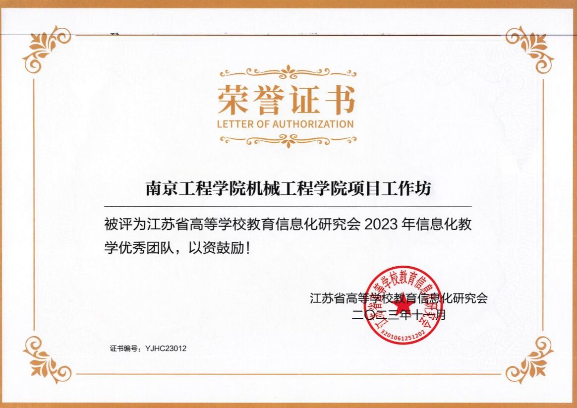 此次评选旨在助力江苏省高校教育信息化建设和发展,树立典型,鼓励先进。机械工程学院紧扣教育信息化建设,创建“项目工作坊”,致力于信息技术与教育教学深度融合。在学校和学院的统筹与支持下,依托省首批虚拟教研室“应用型本科机械类专业教育教学研究与改革虚拟教研室”,由郑璐恺、孙梦馨、邱胜海、苏松飞等骨干教师组成教学团队,积极开展有组织的信息化教学研究与改革实践,积极参与信息化教学项目和比赛,勇于创新,采取打造虚实协同教研建设、推广教学资源数字化、开展信息化平台建设等举措,在教育信息化建设方面取得了一系列成果,持续完善教育信息化人才培养体系。