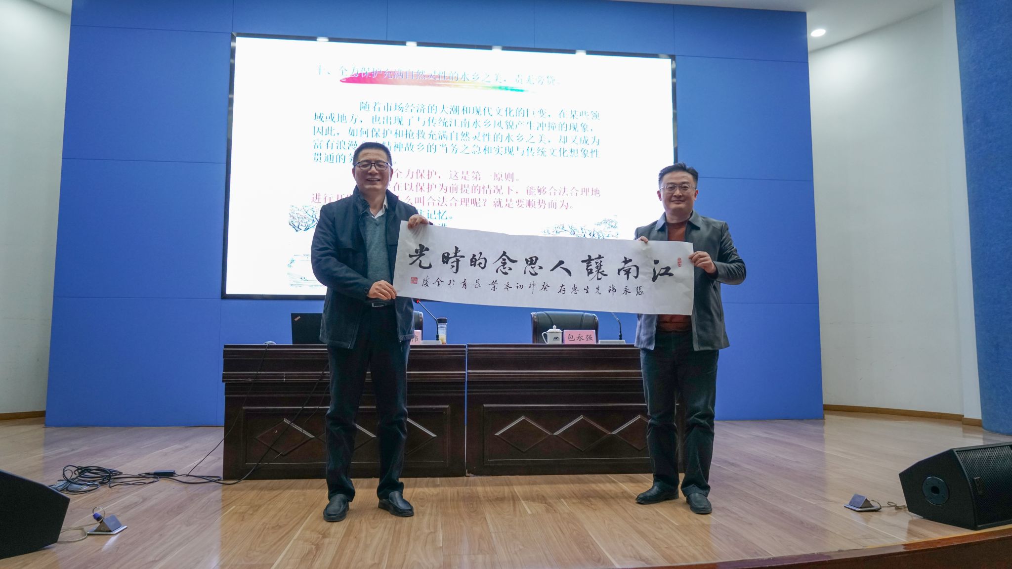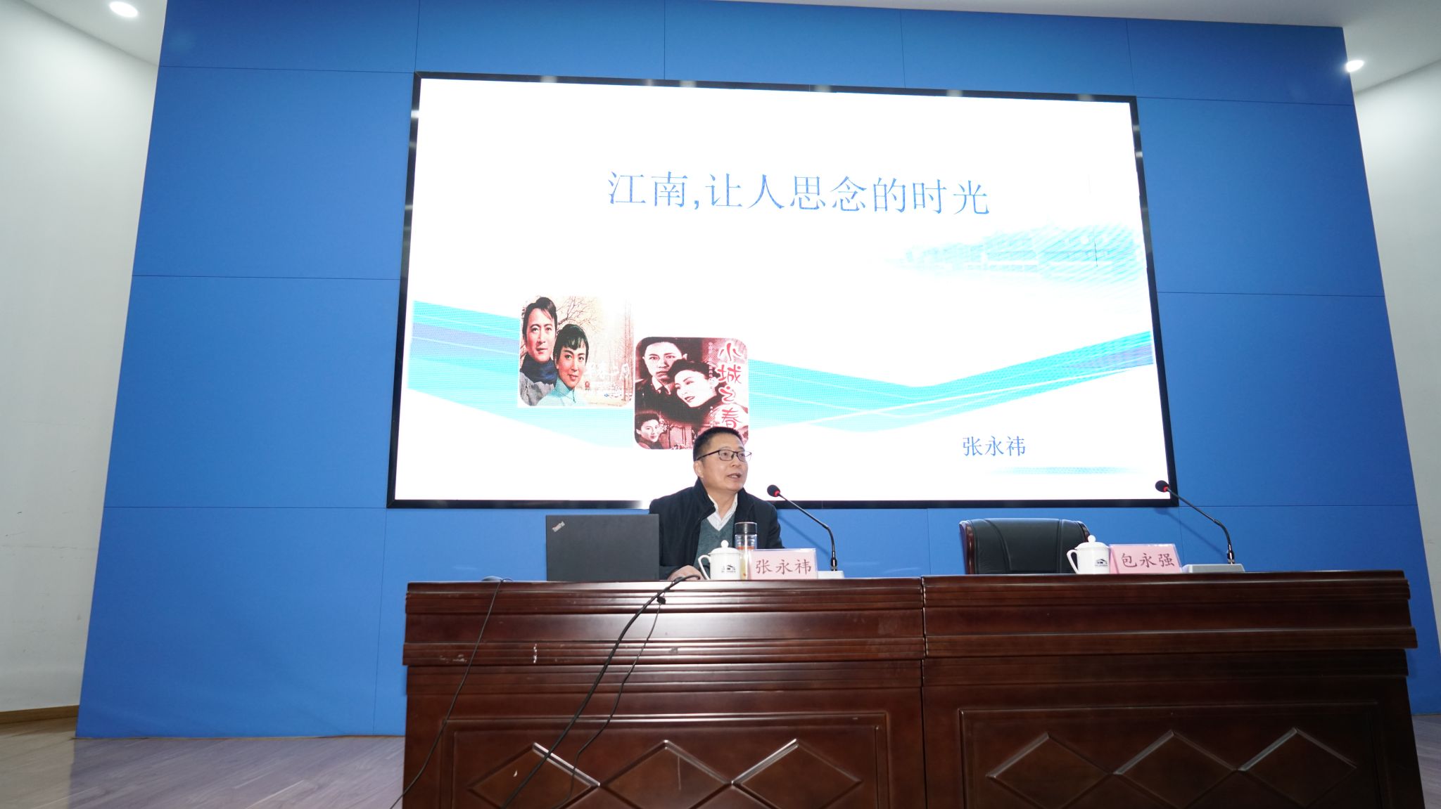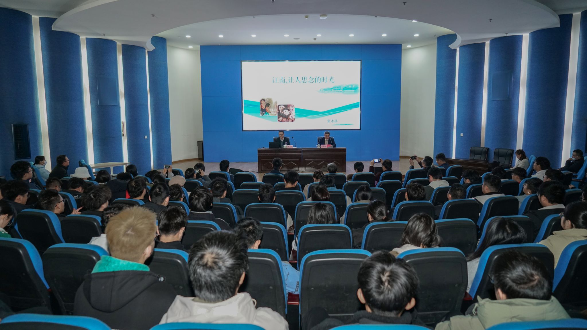 讲座现场,张永祎以歌曲《江南》引出主题,循序渐进地把现场观众带到了一片令人心驰神往的江南美境。他运用独特的视角和生动的语言,带领大家沿着江南水乡文化的思路,从历史中走来,向现实中走去。张永祎阐述了江南的概念、江南三境以及江南审美;结合江南的自然风光和绮丽震撼的人文故事,对江南古镇进行文化分析;面对长三角一体化的新形势和新要求,对于如何保护和发展江南文化提出建议。师生们在聆听中品味江南文化的韵味,跟随着张永祎先生的讲述,一起踏上寻找江南之美的旅程,在历史和文化的探究中,领略着梦里水乡的诗意与情怀。一个多小时的讲座,情感真挚、内涵深厚,既有文化内蕴,又有轶事传说,更具现实意义,师生们在诗一般的优美语言中享受了丰盛的文化大餐,大家纷纷表示:“讲座让我们了解到更多的江南历史和文化,从中感受到历史的情怀和文化的力量,也更进一步树立了我们的文化自信!”
