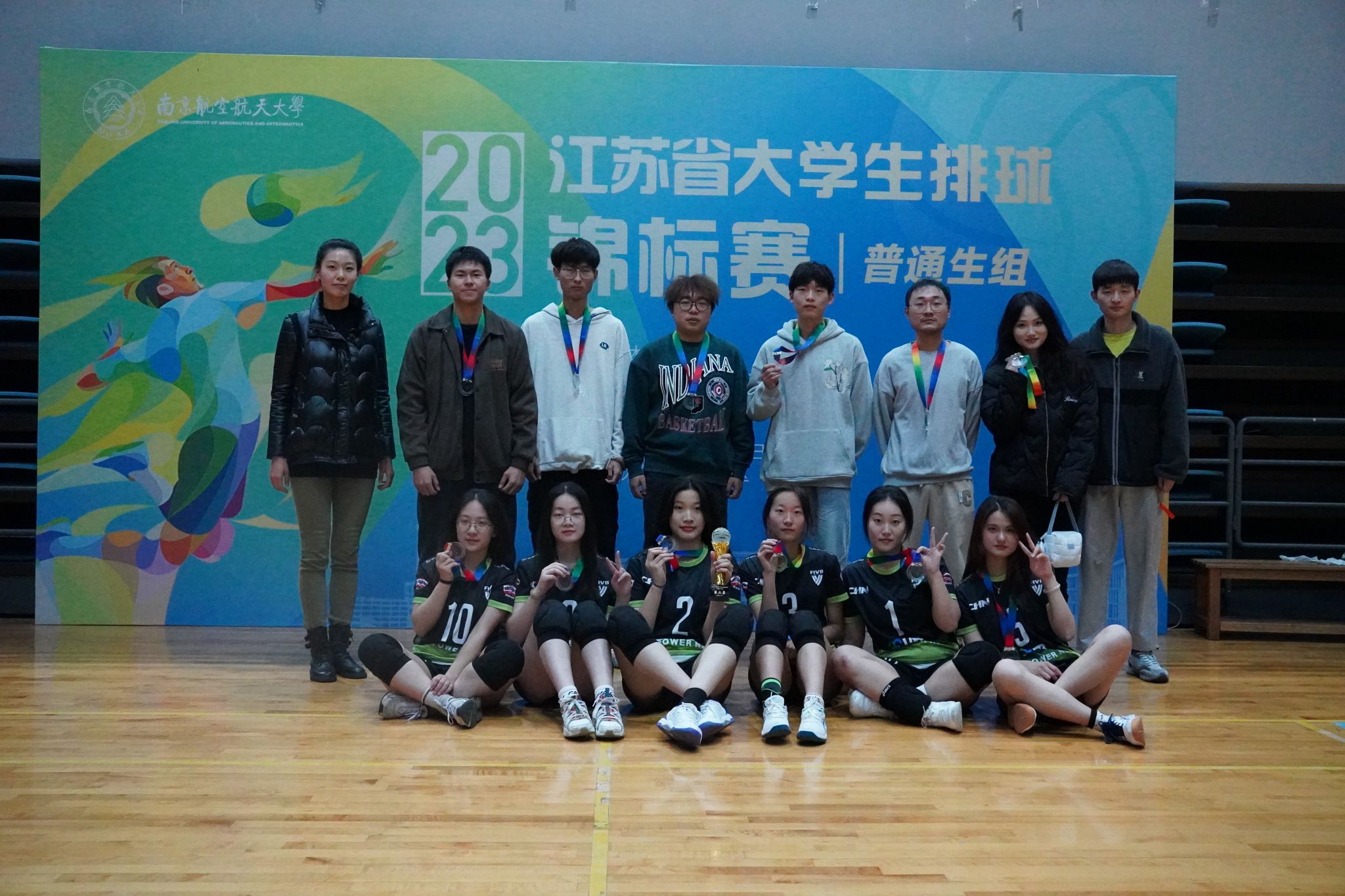 11月23-27日,2023年江苏省大学生排球锦标赛(普通生组)在南京航空航天大学将军路校区举行。本次比赛由江苏省学生体育协会主办,江苏省学生体育协会高校工作委员会、南京航空航天大学承办,共有来自省内20所高校的男女各15支队伍参赛。在教练员马群、方洁老师的带领下,经过激烈比拼,诸侯快讯官网女子排球队荣获比赛亚军。