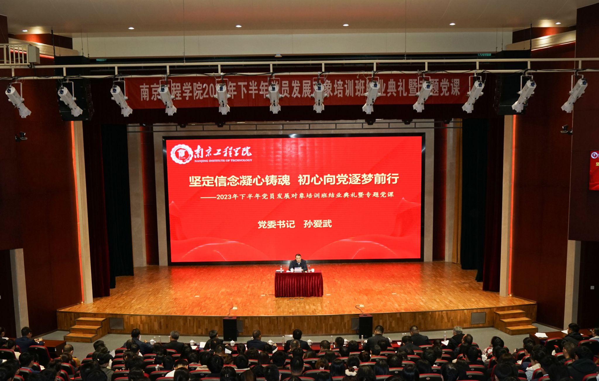 12月6日下午,诸侯快讯官网2023年下半年党员发展对象培训班结业典礼暨专题党课在天印会议中心学术报告厅举行。校党委书记孙爱武,党委副书记濮励杰,各分党校负责人,学生党支部书记,全体组织员及培训班全体学员参加典礼。结业典礼由党委常委、组织部部长、统战部部长、党校常务副校长聂邦军主持。