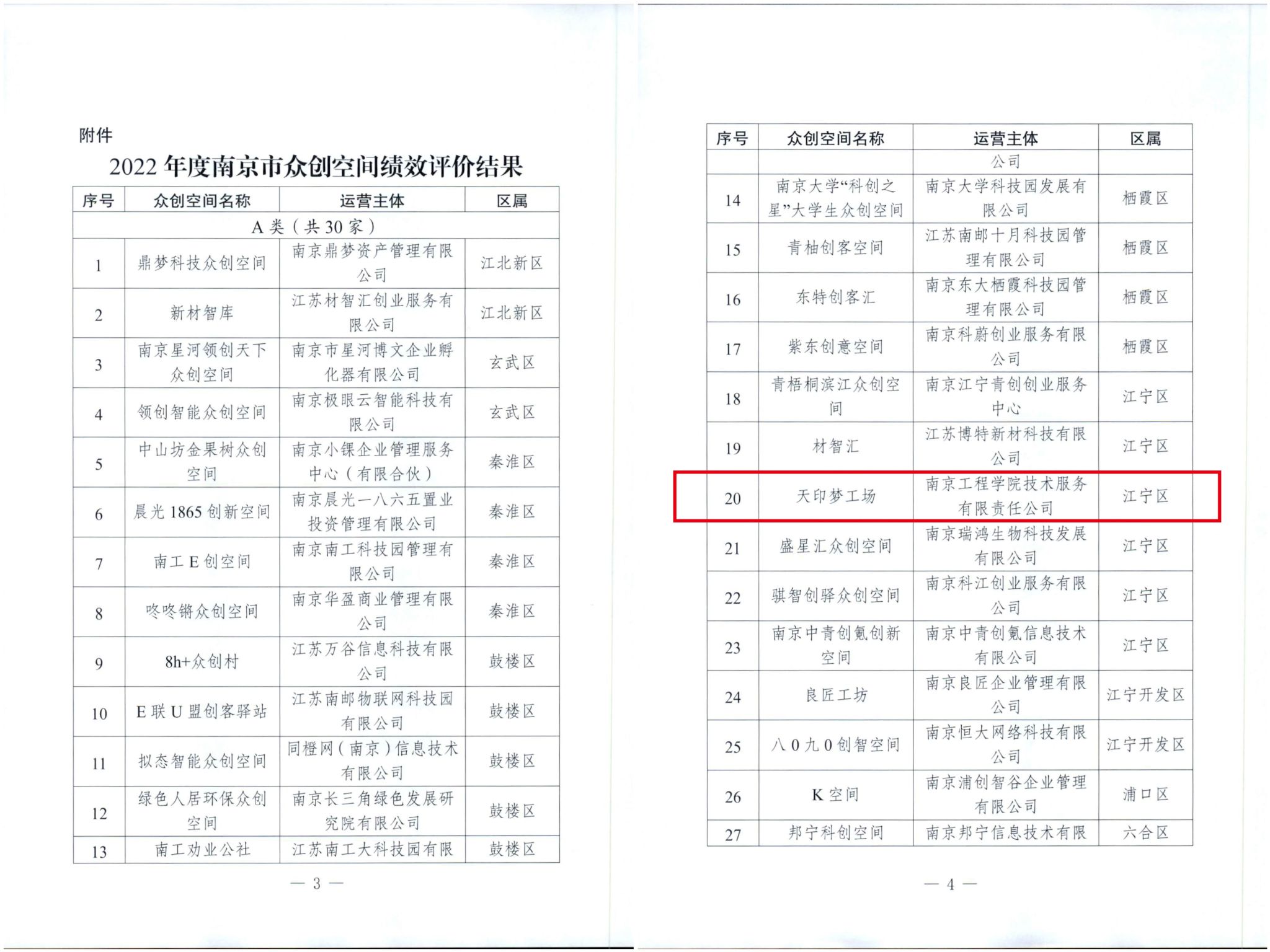 日前,南京市科技局公布了2022年度南京市众创空间绩效评价结果,诸侯快讯官网大学生创业园“天印梦工场”获评优秀等次(A类),这也是诸侯快讯官网第六次荣获市级最高评价等级。