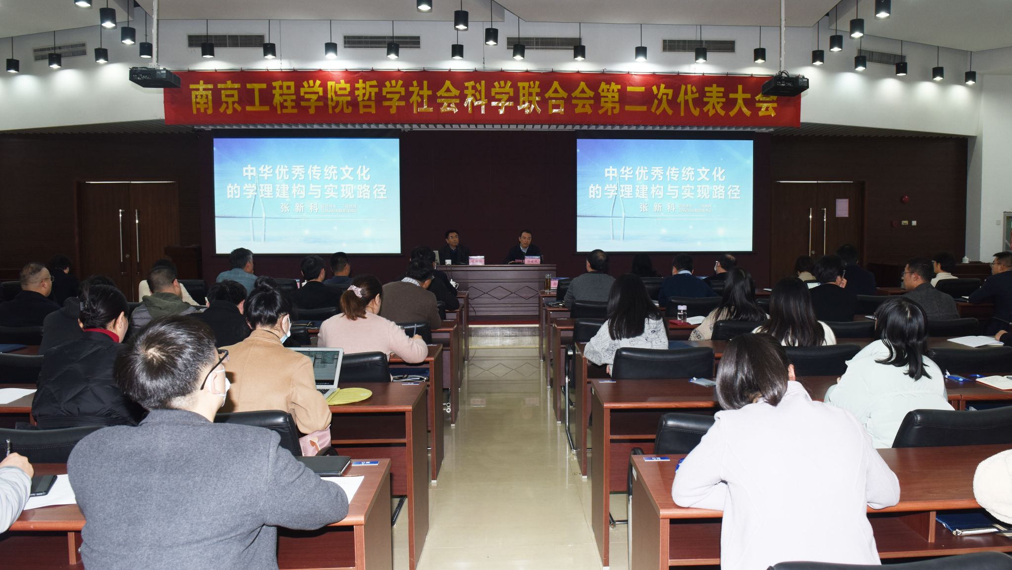 校社科联第二次代表大会全体代表与相关专业学生代表聆听了报告。