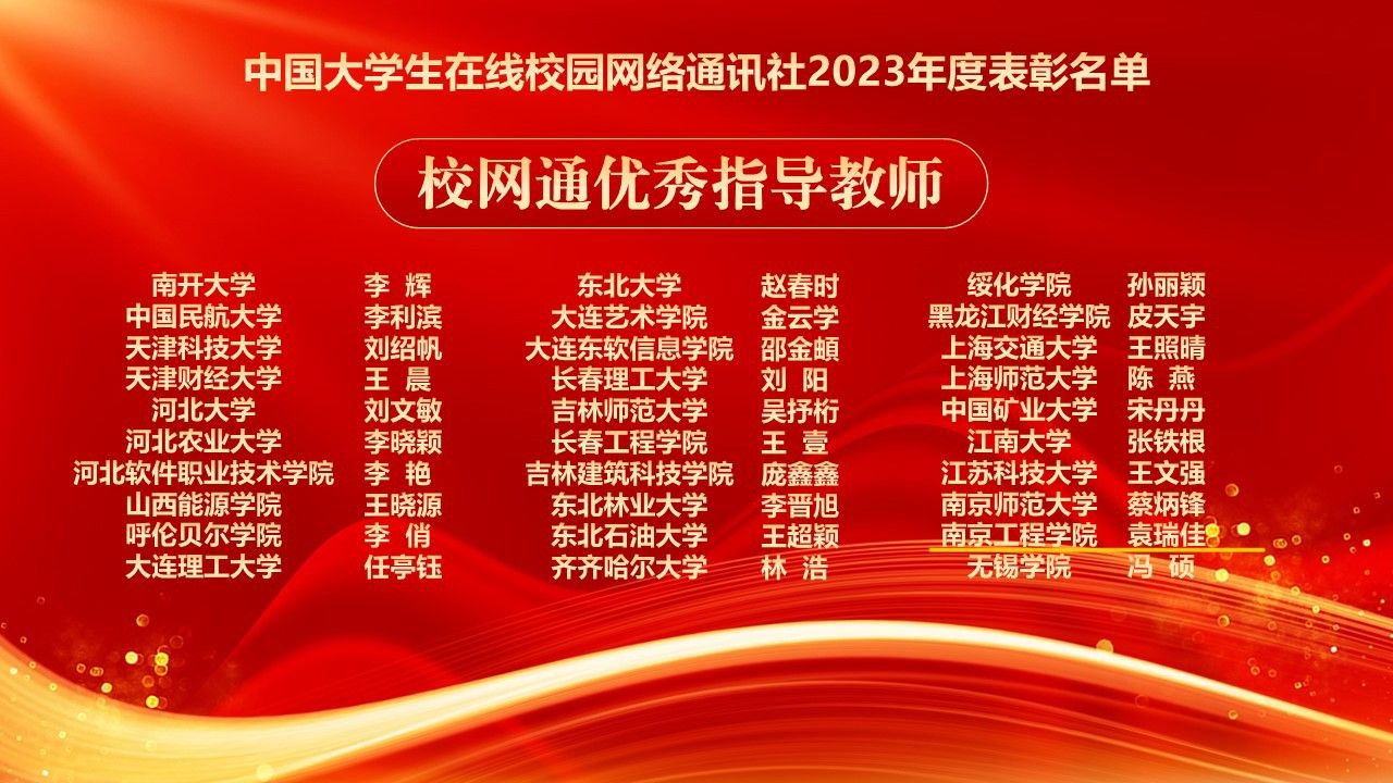 近日,教育部中国大学生在线公布2023年度校园网络通讯社及校园行活动表彰名单,ok1133诸侯快讯网获评“优秀校网通站”,党委宣传部袁瑞佳老师荣获“校网通优秀指导教师”,校融媒体中心王俊杰同学荣获“优秀校园媒体人”称号。