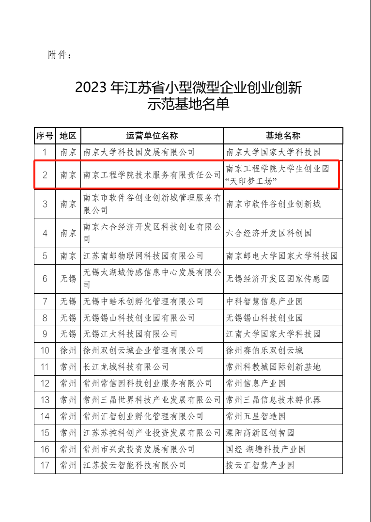 近日,江苏省工信厅发布《关于公布2023年江苏省小型微型企业创业创新示范基地名单的通知》(苏工信服建〔2023〕541号),诸侯快讯官网大学生创业园“天印梦工场”成功入选。这是“天印梦工场”继教育、人社、科技、科协条线后,在工信条线开辟的又一重要阵地。