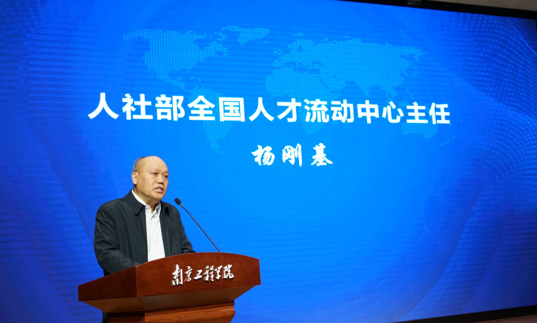 在青年人才服务交流研讨活动中,孙爱武、黄成文先后代表学校与江宁区政府致欢迎辞,顾潮、杨刚基分别代表省人社厅、全国人才流动中心讲话。