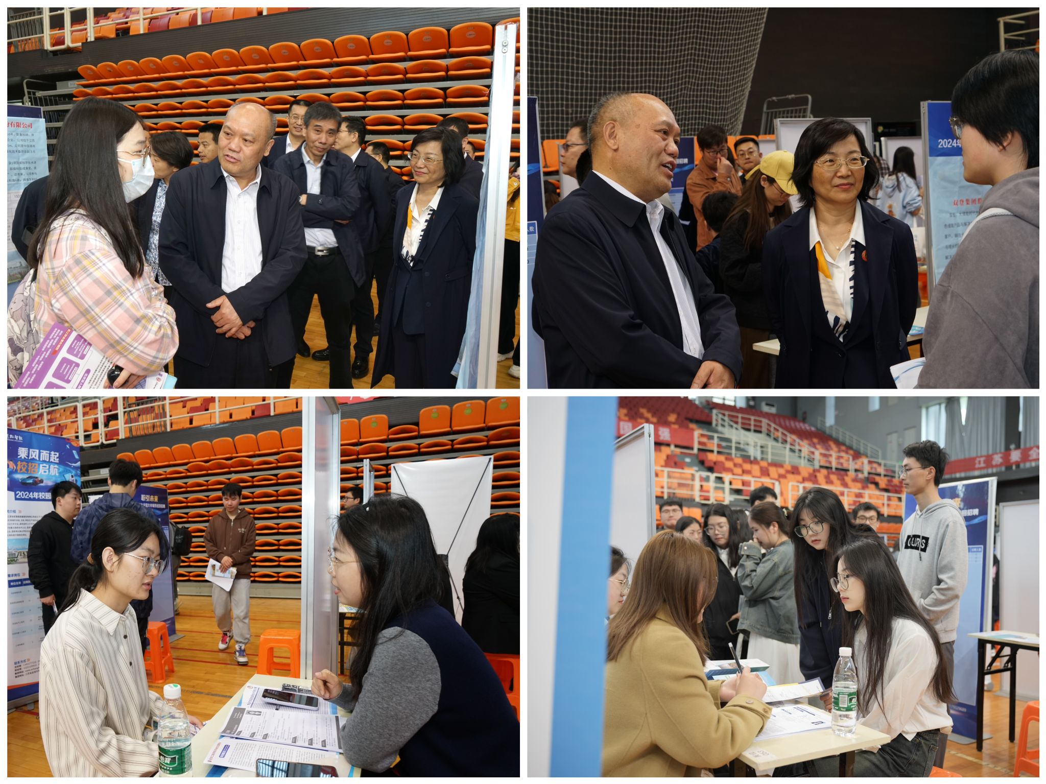 在同步开展的全国大中城市巡回招聘活动展位前,领导们详细询问企业规模、岗位需求及人才储备情况,对用人单位表示欢迎和感谢;他们还与求职毕业生亲切交流,详细了解同学们的求职意愿和签约情况,鼓励毕业生抓住机遇,尽快找到适合自己的工作岗位。据介绍,此次大中城市巡回招聘会共邀请到中国铁建电气化局集团有限公司、中国平安人寿保险股份有限公司、中天钢铁集团有限公司、国机重工集团国际装备有限公司等500多家优质企业,提供了万余个岗位需求,吸引了省内众多高校毕业生前来应聘。