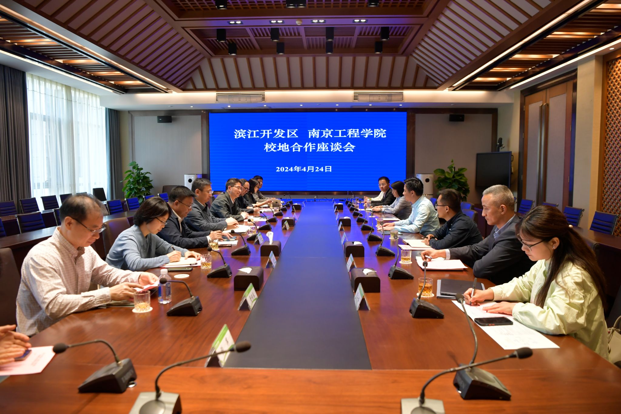 朱松青对滨江开发区以及相关企业的热情接待表示感谢,并介绍了学校的历史沿革、人才培养特色、办学成效等情况,重点介绍了当前机械数控类毕业生就业情况。他指出,学校第四次党代会提出一流应用型大学建设“登峰计划”,统筹推进“十大一流工程”,加强校地行企合作、科教产教校城融合意义重大。他表示,学校与滨江开发区相隔不远,园区信息通信技术、绿色智能汽车、高端智能装备等产业与学校专业设置契合度高,合作前景广阔。希望双方聚焦新质生产力,在产学研合作、研究生工作站建设、大学生就业、人员培训、实验基地共建、科技攻关、联合项目申报等方面深化交流,提升学校服务区域经济建设的能力,助力滨江开发区省级一流园区建设。