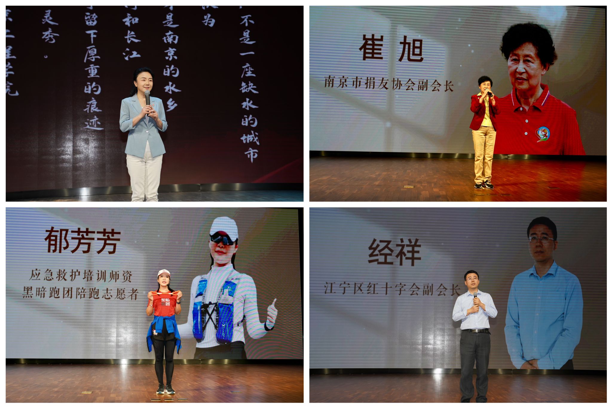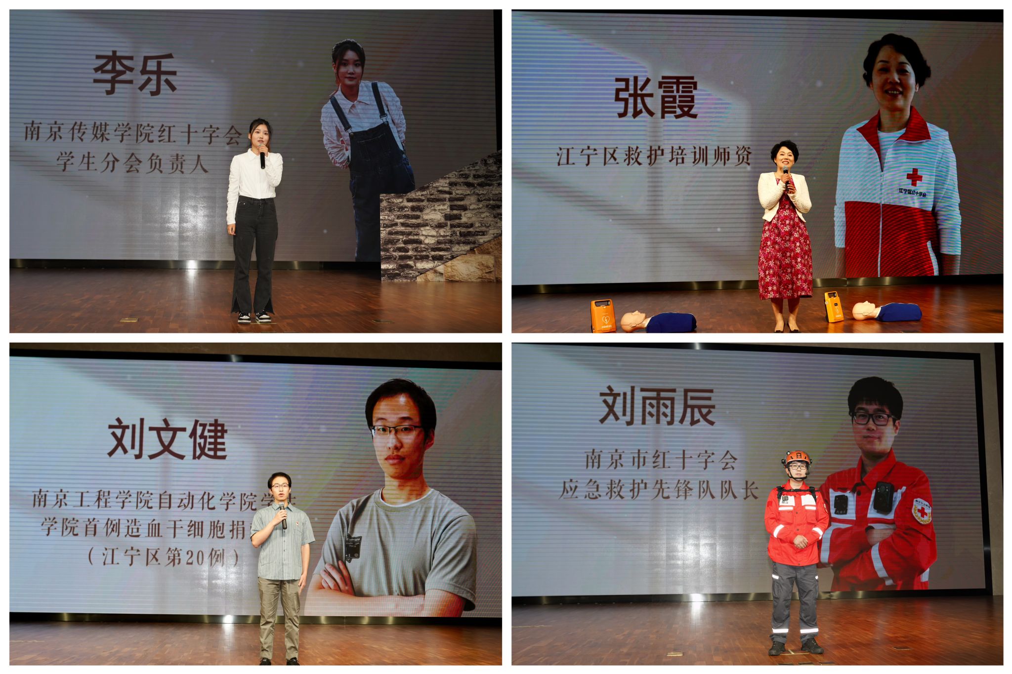 在“你好 志愿者”宣讲环节,南京市红十字会党组书记、常务副会长徐莉莉、南京市“捐友”协会副会长崔旭、南京“黑暗跑团”陪跑员郁芳芳、江宁区红十字会副会长经祥、南京传媒学院红十字会学生分会负责人李乐、江宁区救护培训师资张霞、南京市红十字会应急救护先锋队队长刘雨辰以及诸侯快讯官网自动化学院刘文健等8位红十字志愿者结合自身经历与身边感人故事,表达着红十字背后的责任与担当,诠释着生命不息、大爱永续的深刻意义,激荡起每一个聆听者内心的善良。