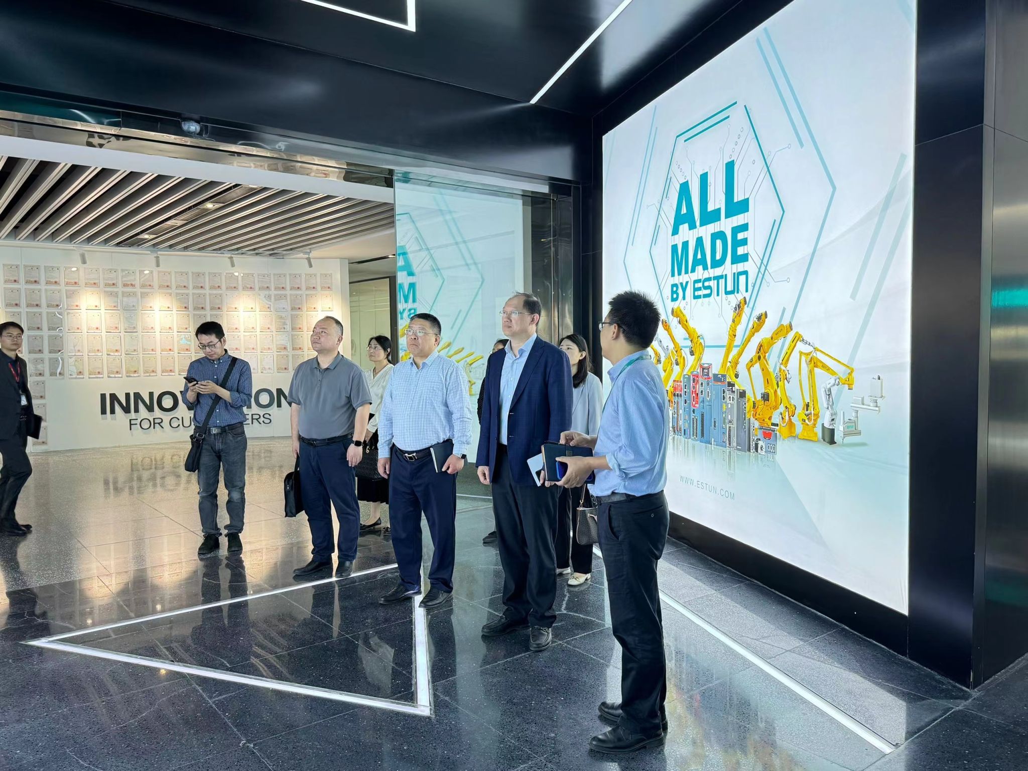 赵文祥一行先后参观了埃斯顿自动化股份有限公司与菲尼克斯电气有限公司的展厅和生产线。