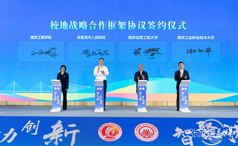 大会现场,汪群代表学校与张家港市人民政府签署“校地战略合作框架协议”,双方将在前期工作的基础上,以协同创新发展为主线,立足实际,着眼长效,建立战略合作伙伴关系,发挥学校优势,推动教育链、人才链、产业链、创新链有机衔接,服务张家港市打造中国式现代化县域先行区之所需。